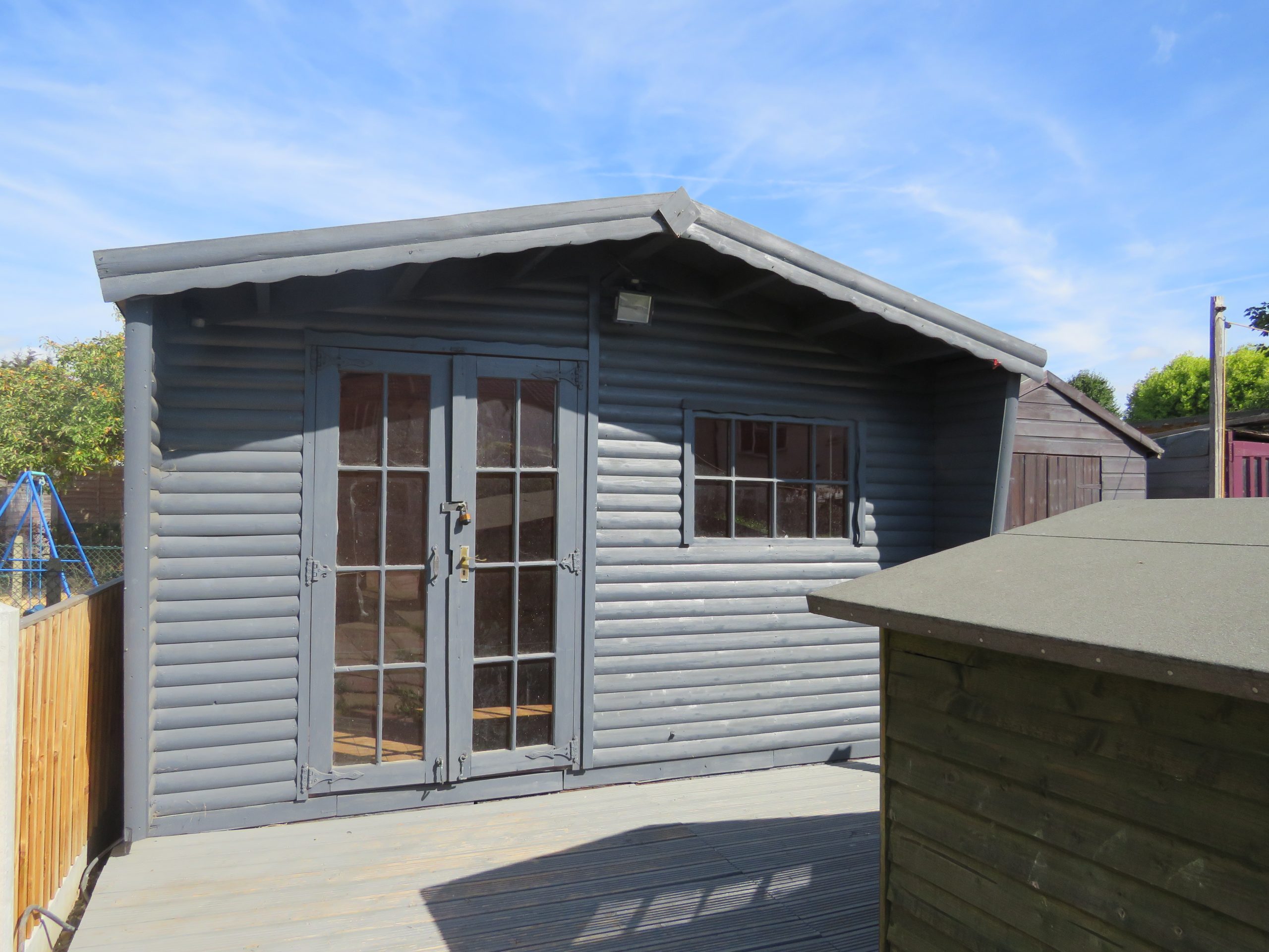 SUMMMER HOUSE: Located at the rear of the garden, this fully converted and insulated room, it has multiple electric points, windows over looking the garden for natural light, plus there is a ideal for garden machinery and extra storage.